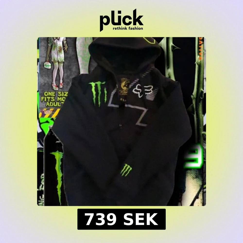 Svart hoodie från Fox och Monster Energy med gröna och vita broderade loggor, dragkedja och huva. Snygga detaljer med stora tryck och brodyr på bröstet och ärmen samt nummer 4 på huvan. Perfekt för dig som gillar streetwear och motorsport.