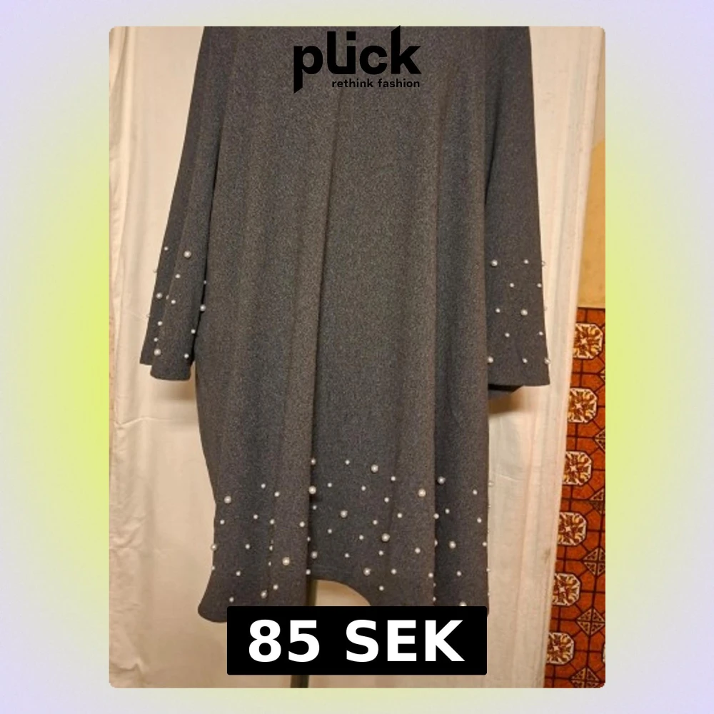 Snygg grå långärmad tröja från Zizzi i storlek XL. Tröjan har pärldetaljer på ärmarna och nedtill, vilket ger en extra touch. Modellen är loose fit och har en mjuk, stickad känsla. Perfekt för dig som gillar stilrena plagg med lite extra.