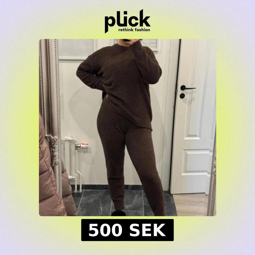 Mysig brun set i fluffigt material med avslappnad passform. Perfekt för kalla dagar när du vill vara extra bekväm.