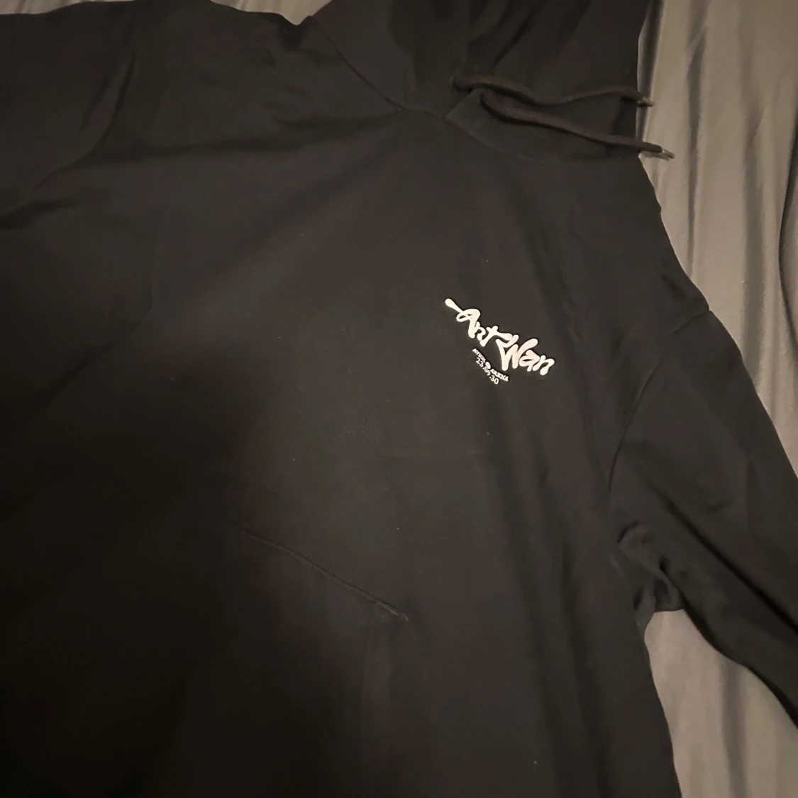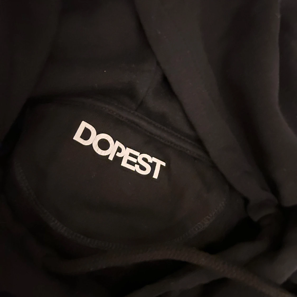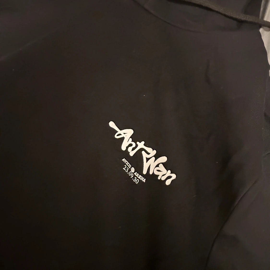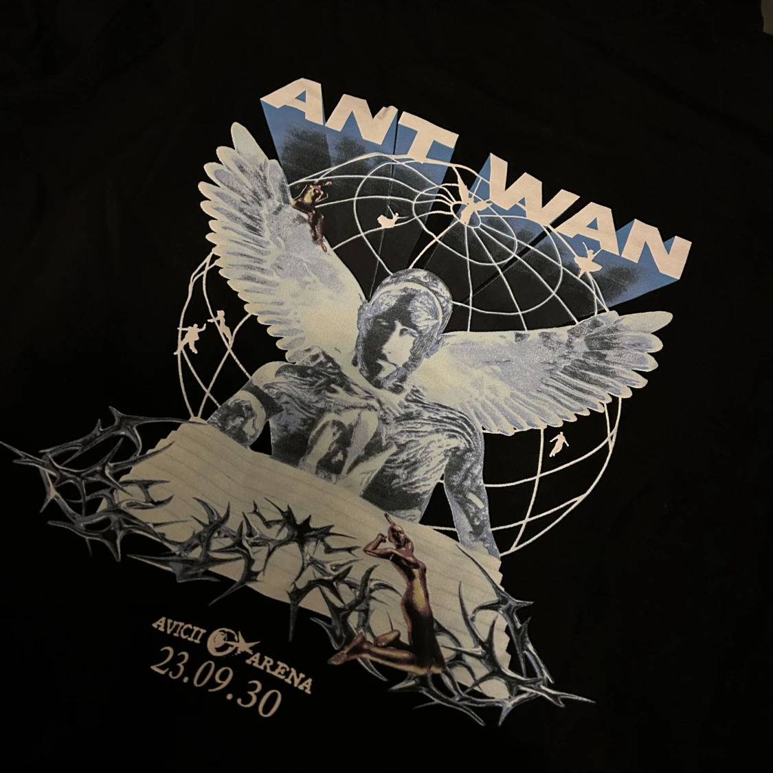 Svart hoodie från Dopest x Ant Wan med tryck på bröstet och stor grafisk print på ryggen. Huva med snörning och känguruficka framtill. Materialet är mjuk bomull, perfekt för dig som gillar streetwear och vill sticka ut med snyggt motiv från Avicii Arena. Merch som inte säljs mer!