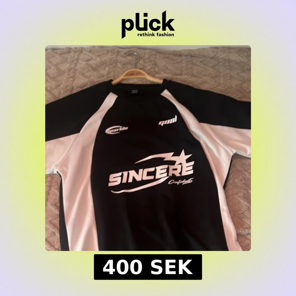 Säljer en svart och vit tröja från Sincere med tryck på framsidan. Tröjan har långa ärmar och är perfekt för sportiga aktiviteter. Den är tillverkad i ett syntetmaterial som ger en bekväm passform.Storleken stämmer inte jag skulle säga att den är mer som L. Pris kan diskuteras