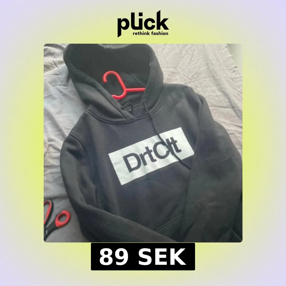 Svart hoodie från DrtCtt i storlek XL med stor vit logga på bröstet. Klassisk huva med snörning och mjukt material som känns skönt mot huden. Perfekt för chill dagar eller när du vill ha en clean streetwear-look.