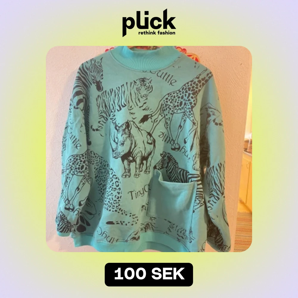 En grön oversized tröja med djur mönster över hela. Bredd : 128cm Långs : 65cm Axel : 60cm