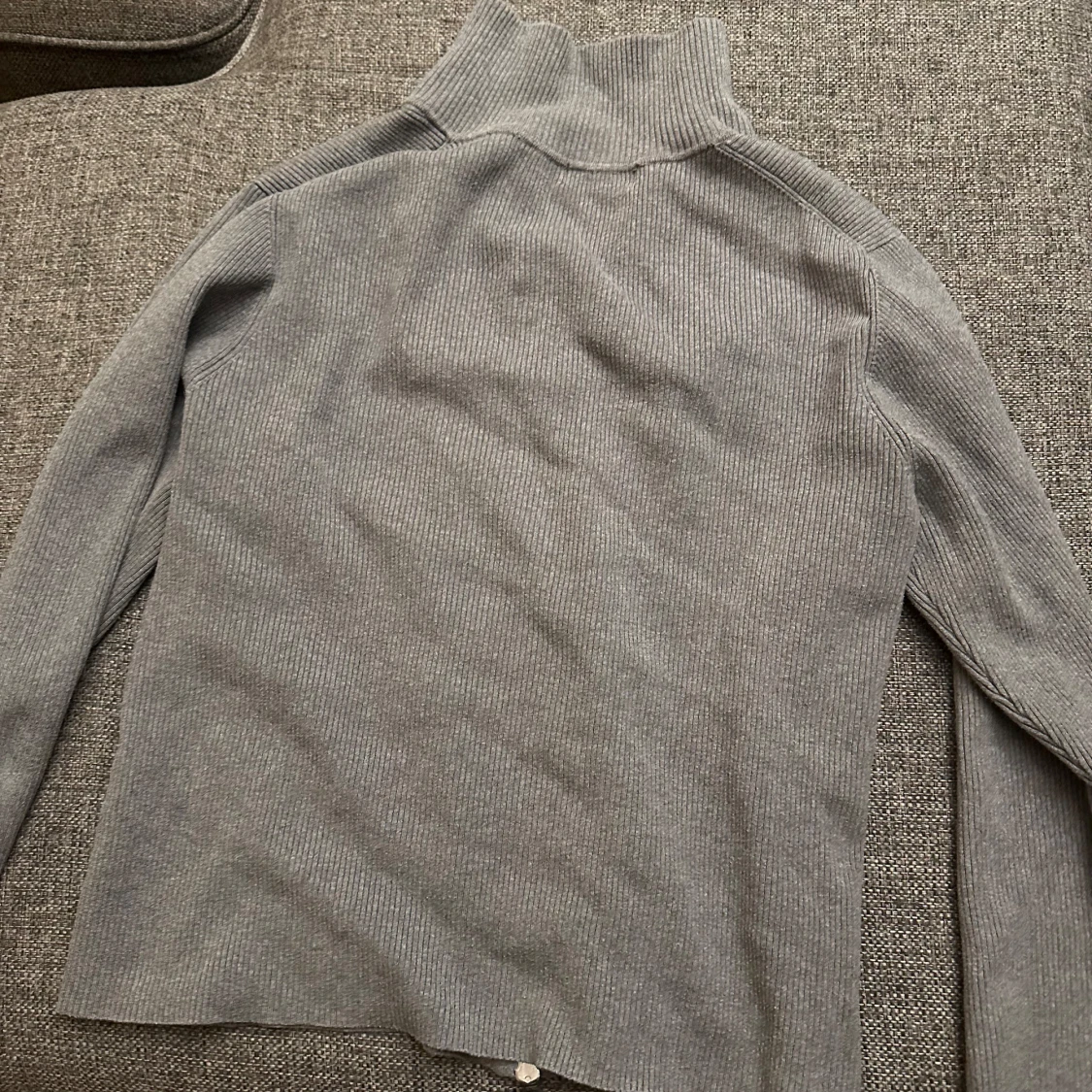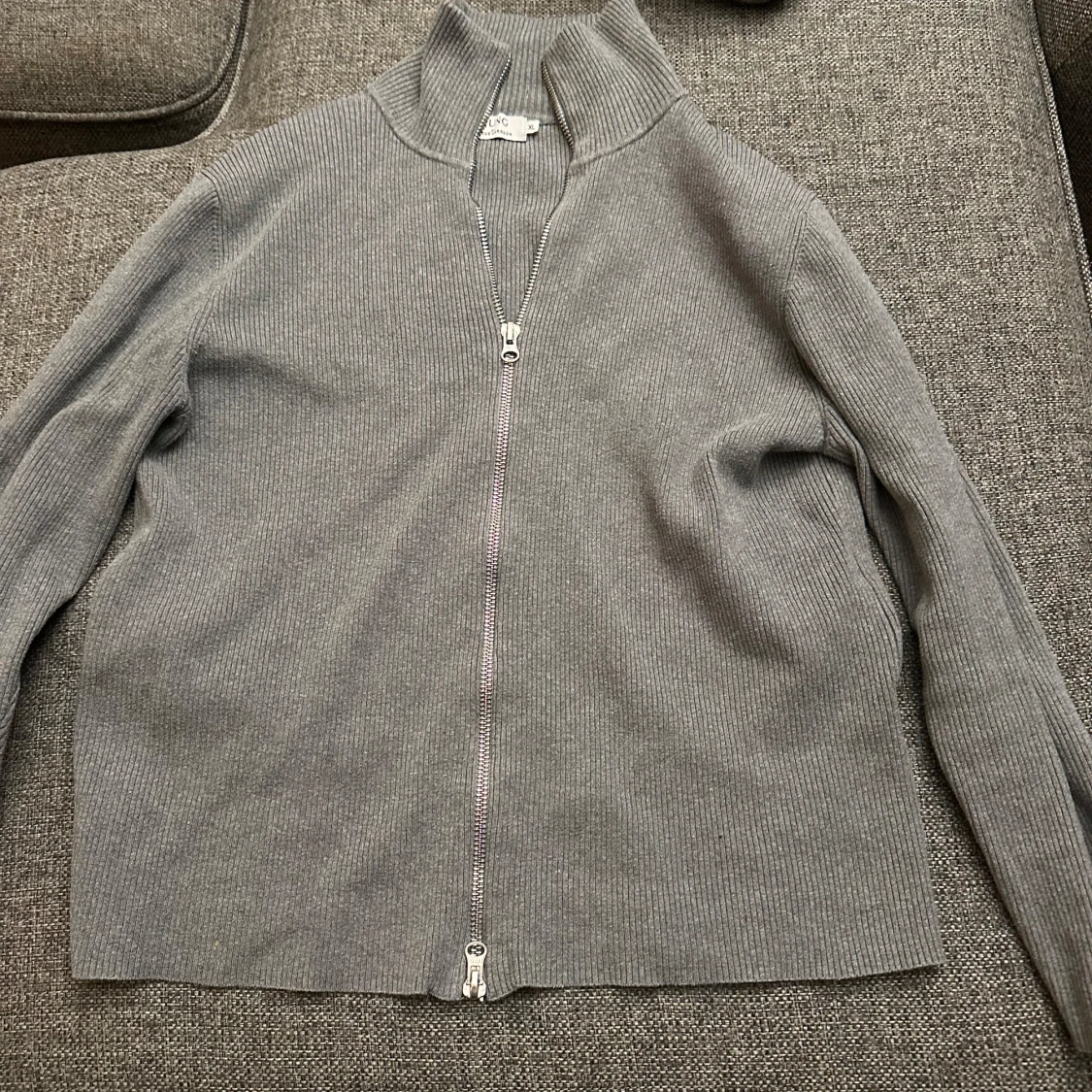 Grå ribbad kofta med dragkedja
