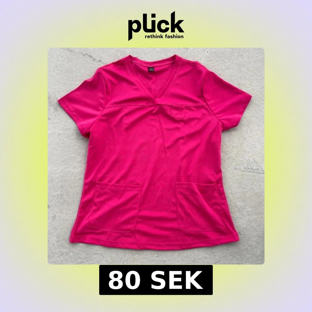 En starkt rosa topp från SHEIN i storlek XL. Modellen har v-ringning, korta ärmar och tre praktiska fickor framtill. Tillverkad i mjukt syntetmaterial som känns skönt mot huden. Perfekt för dig som gillar färg och enkel stil.