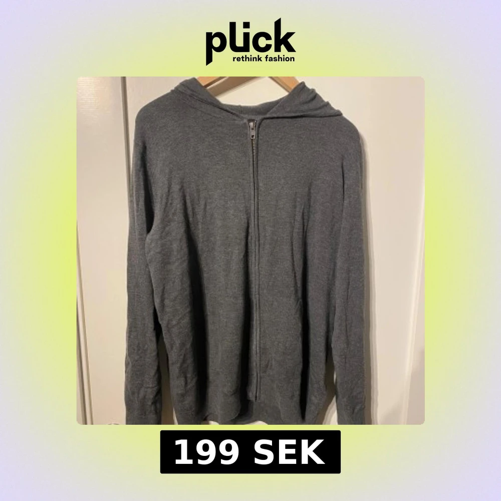 En enkel och stilren mörkgrå hoodie med hel dragkedja framtill och huva. Tröjan har långärmade ärmar och är gjord i mjukt material som känns skönt mot huden.