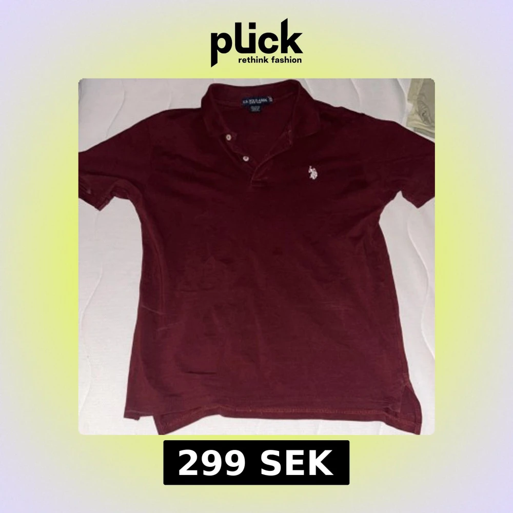 Säljer en stilren vinröd pikétröja från U.S. Polo Assn. med klassisk krage och två knappar. Tröjan har en broderad logotyp på bröstet och är perfekt för en avslappnad look.