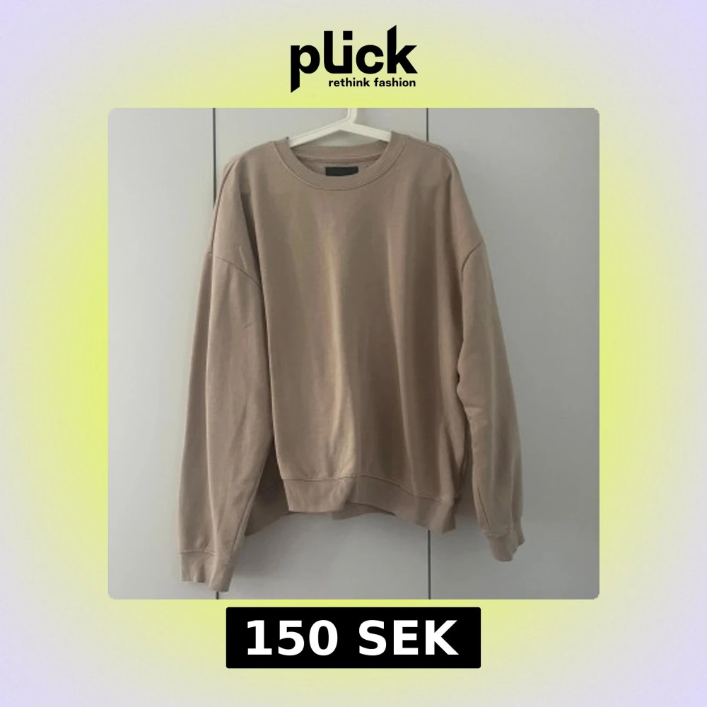 Beige oversized sweatshirt med rund halsringning och långa ärmar. Enkel och stilren design med ribbade muddar vid ärmslut och nederkant. Sparsamt använd ett fåtal gånger. Storlek XL, oversized/pösig.