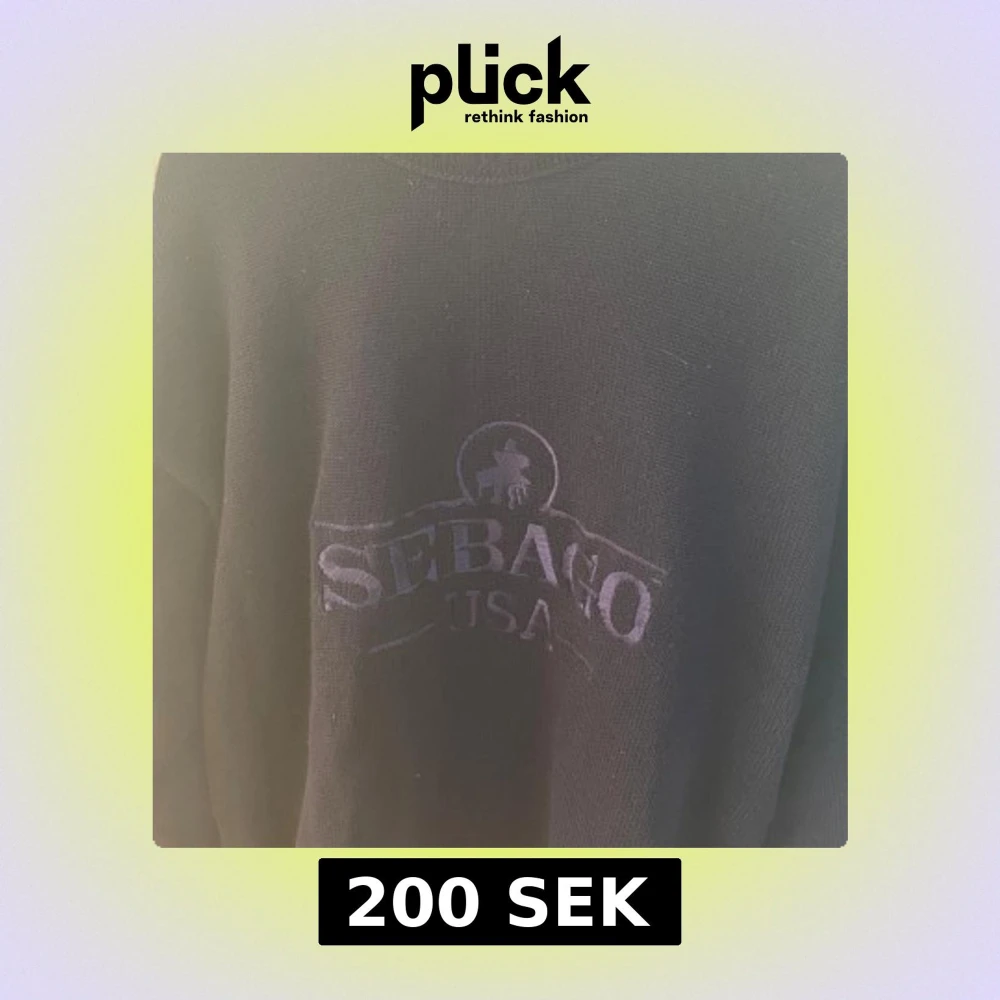 Säljer en klassisk marinblå stickad tröja från Sebago med ett broderat märke på framsidan. Tröjan har en rund halsringning och är perfekt för kyligare dagar. Passar bra för en avslappnad och stilren look.