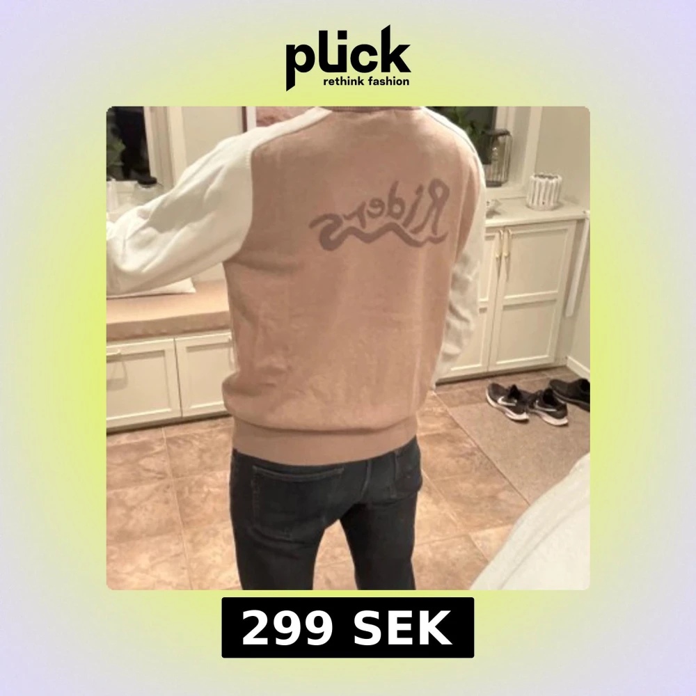 Snygg beige tröja från Riders med vita ärmar och text på ryggen. Tröjan har ribbade muddar och en rund halsringning. Perfekt för en avslappnad stil.