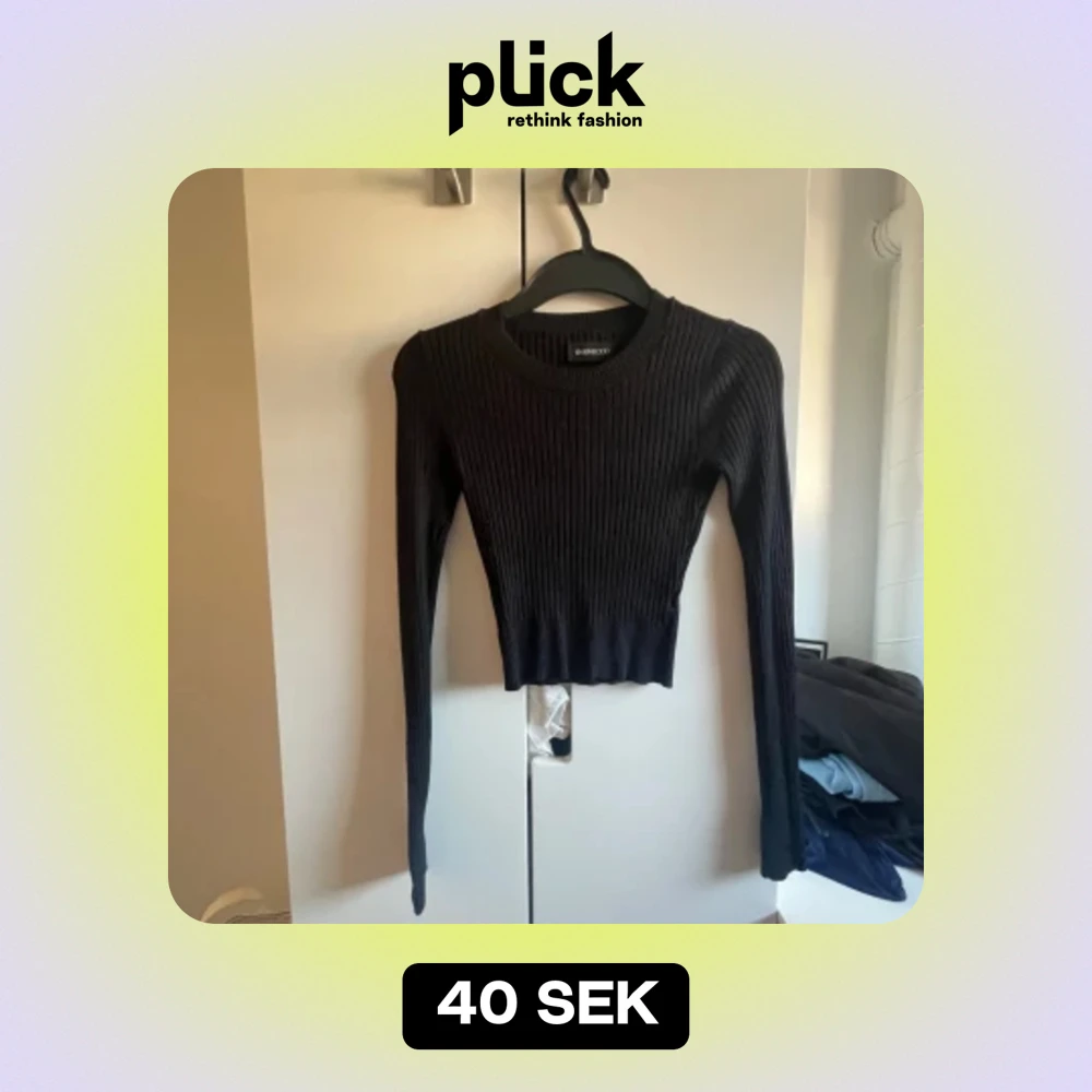 Svart långärmad ribbad tröja
