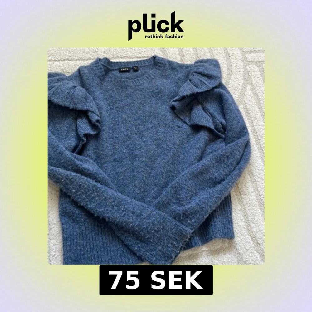 Mysig blå stickad tröja från LMTD med snygga volangdetaljer på axlarna. Tröjan har rund halsringning, ribbade muddar och lång ärm. Perfekt för dig som vill ha en trendig och bekväm look under kyliga dagar.