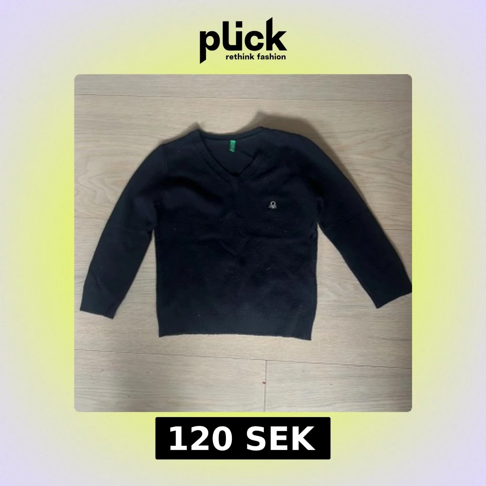 Svart v-ringad tröja från Benetton med liten broderad logga på bröstet. Tröjan är långärmad och har ribbade muddar vid ärmslut och nederkant. Perfekt för lager-på-lager och enkel att matcha med olika outfits. ‼️Aldrig använd‼️ orginal