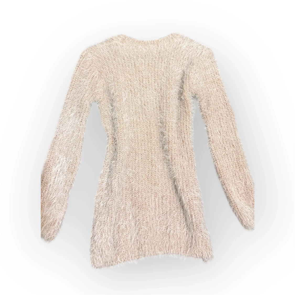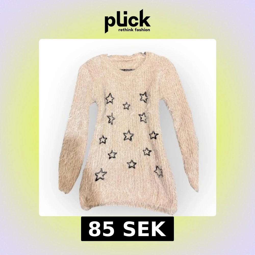 Mysig beige stickad tröja med svarta stjärnor framtill. Tröjan har lång ärm och en fluffig, lite lurvig känsla i materialet. Perfekt för dig som gillar en chill och trendig look med lite extra detaljer.
