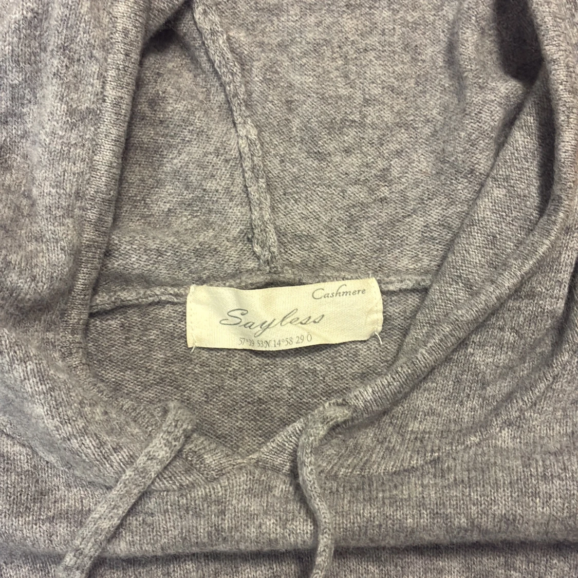 Mjuk och lyxig grå hoodie från Sayless i 100% kashmir. Tröjan har huva med snörning, långa ärmar och ribbade muddar. Perfekt för dig som vill ha en stilren och bekväm look med exklusiv känsla. PRIS KAN DISKUTERAS😀