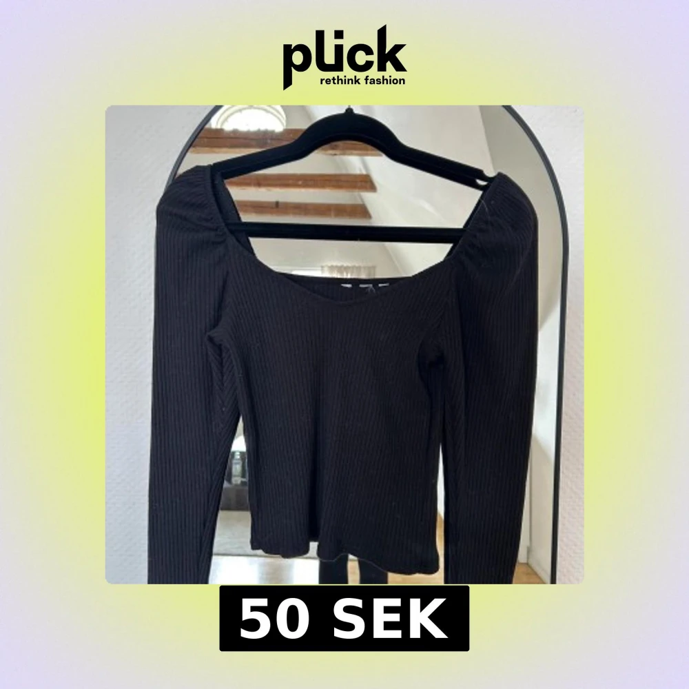 Säljer en svart ribbad långärmad topp med snygg v-ringning och figurnära passform. Perfekt att styla med jeans eller kjol för en clean look. Materialet är stretchigt och bekvämt, vilket gör den enkel att bära hela dagen. Från h&m