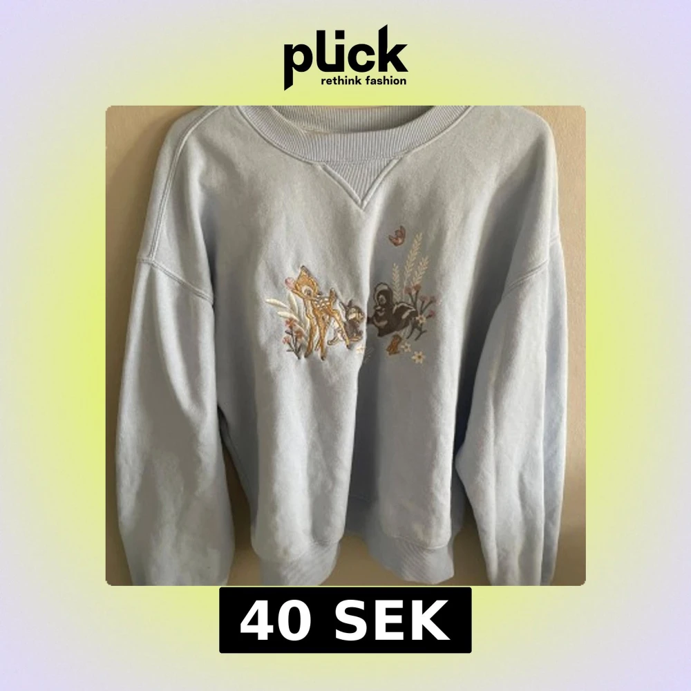Superfin ljusblå sweatshirt med broderat Bambi-motiv framtill. Tröjan har rund halsringning och långa ärmar. Perfekt för dig som gillar Disney och vill ha en söt och bekväm tröja.