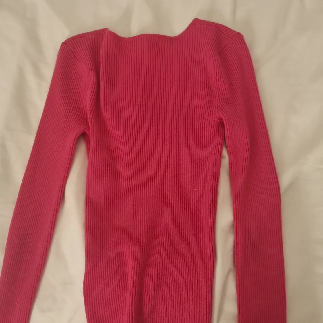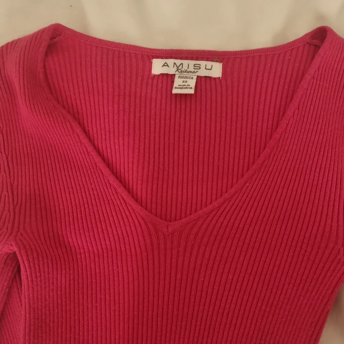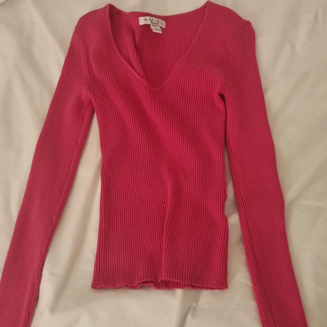Säljer en ribbad långärmad tröja från Amisu i en snygg rosa färg. Tröjan har v-ringning och är figurnära med stretchigt material. Perfekt för dig som gillar en enkel men stilren look. Passar till både jeans och kjol.