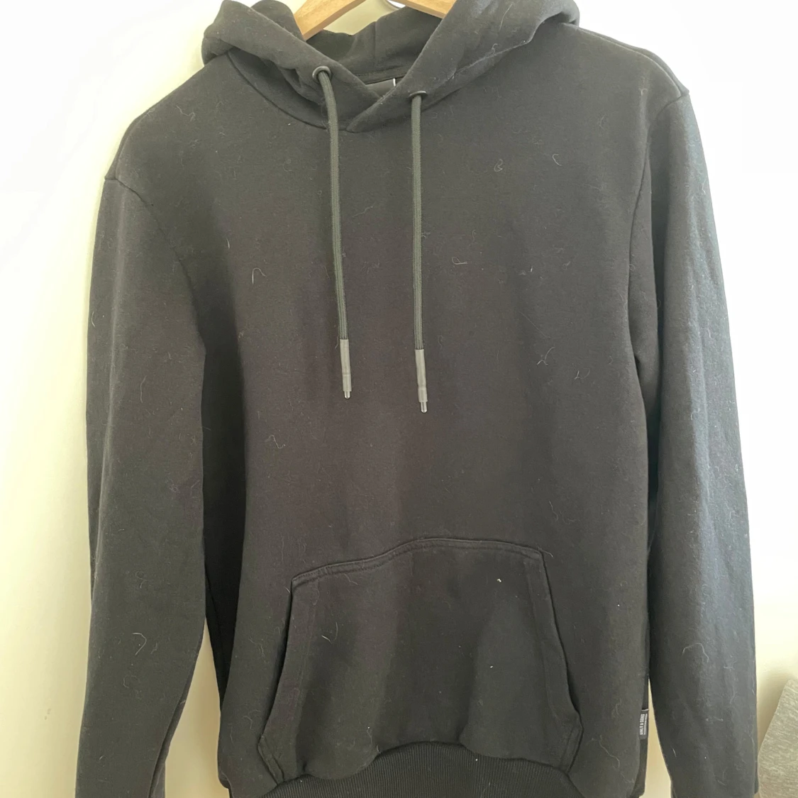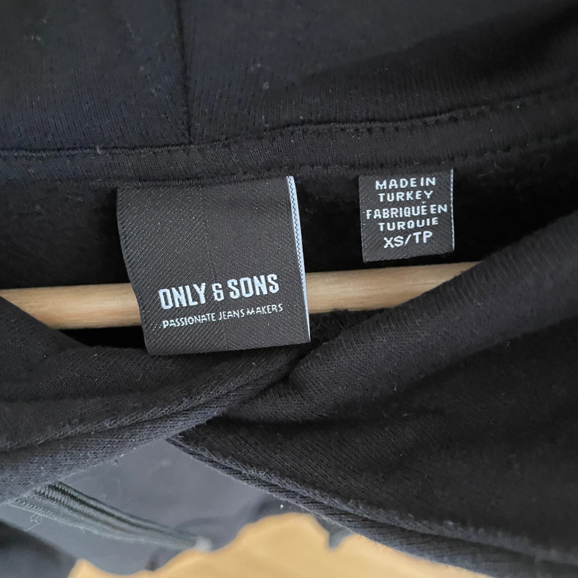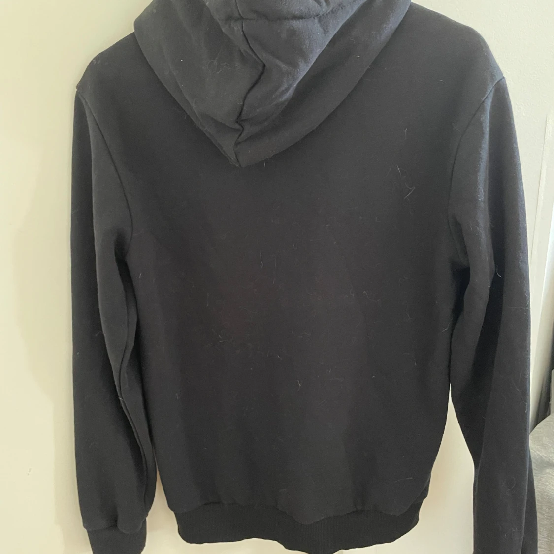 Säljer en svart hoodie riktigt bra skick knappt använd, med snören. Storlek xs