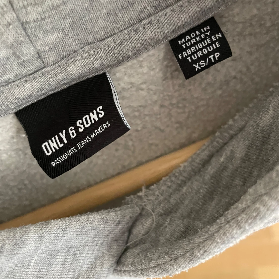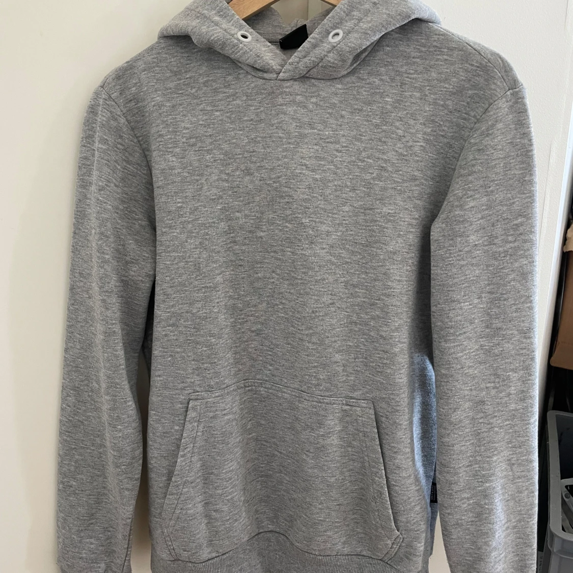 Säljer en grå hoodie i storlek xs, snören saknas, knappt använd
