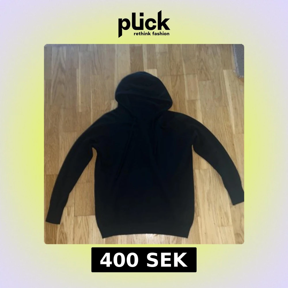 Mjuk och stilren svart hoodie i kashmir med huva och snörning. Tröjan har långärmade ribbade muddar och en klassisk passform som funkar till jeans eller joggers. Perfekt för dig som gillar enkel och clean stil med lite lyxig känsla. Tröjan är i storlek xs och är i mycket bra skick.