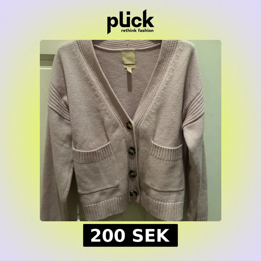 Söt ullcardigan från hm i lite rosa/lila toner. Storlek XS men jag skulle säga att den sitter mer som en M