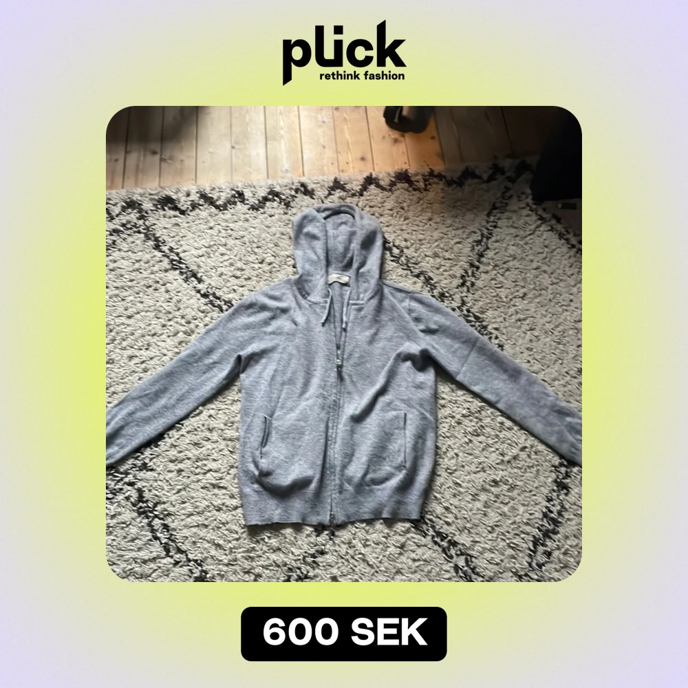 Mysig grå hoodie i kashmir från Sayless. Perfekt för kyliga dagar med sin mjuka och varma känsla. Den har en dragkedja framtill och praktiska fickor. Passar både till vardags och avslappnade tillfällen. Nypris 900 mitt pris 600