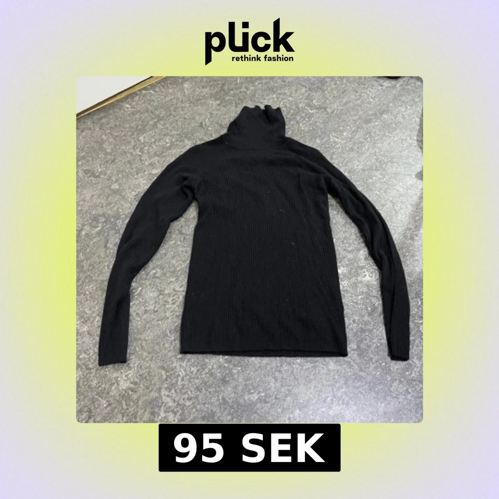 Svart ribbad polotröja från C i storlek XS. Tröjan har lång ärm och hög polokrage, perfekt för lager-på-lager. Den är figurnära och tillverkad i ett stretchigt, mjukt material som sitter snyggt på kroppen.