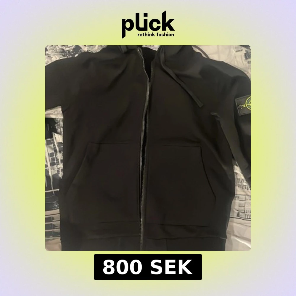 Svart hoodie från Stone Island med klassisk logga på ärmen. Tröjan har dragkedja framtill, två stora fickor och huva med snörning. Tillverkad i mjuk bomull, perfekt för en clean och stilren look.