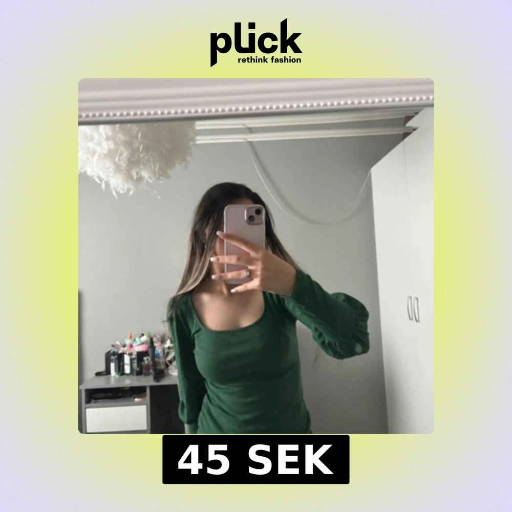 Säljer en snygg grön ribbad topp med långa ärmar. Toppen har en rund halsringning och är perfekt för både vardag och speciella tillfällen. Passar bra till jeans eller kjol för en stilren look.
