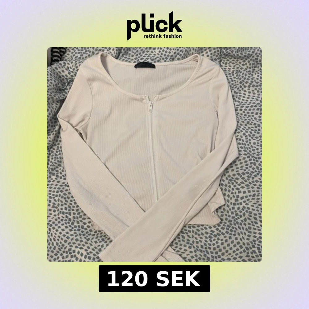 Snygg vit ribbad kofta med lång ärm och dragkedja framtill. Modellen är croppad och har en rundad halsringning. Perfekt att slänga över ett linne eller t-shirt för en chill look.