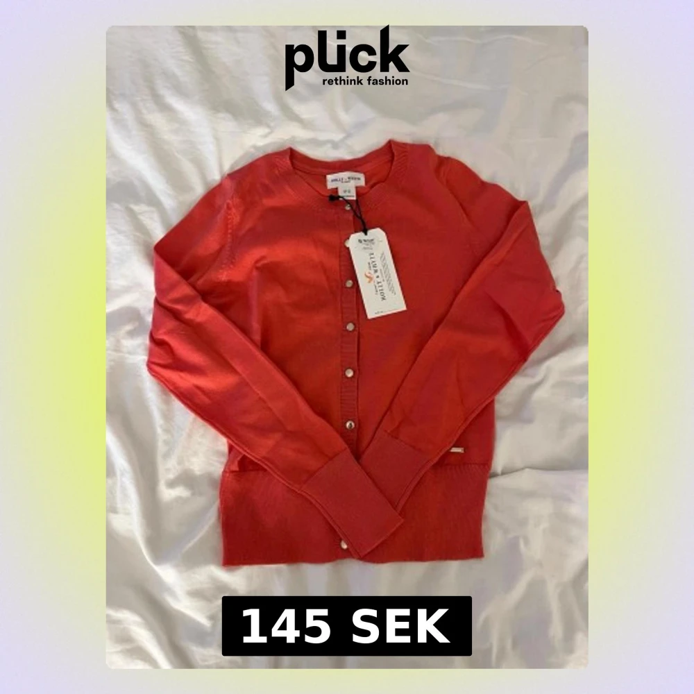 Snygg röd-rosa kofta från Holly & Whyte by Lindex i storlek XS. Koftan har rund hals, långa ärmar och guldfärgade knappar framtill. Perfekt för lager-på-lager och chill stil. Koftan är oanvänd med lappen kvar på