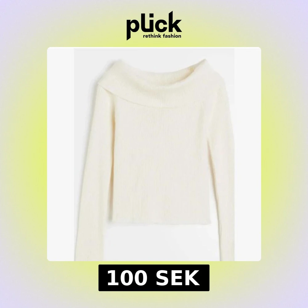 Säljer min helt slutsålda stilren vit ribbad tröja med offshoulder-design. Tröjan har långa ärmar och en mjuk, bekväm passform. Perfekt för en avslappnad men elegant look.