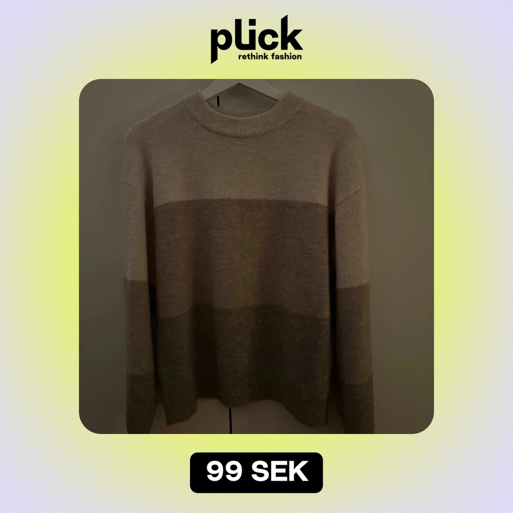 Mysig stickad tröja i beige och grå nyanser. Perfekt för kyliga dagar med sin mjuka och varma känsla. Tröjan har långa ärmar och en rund halsringning.
