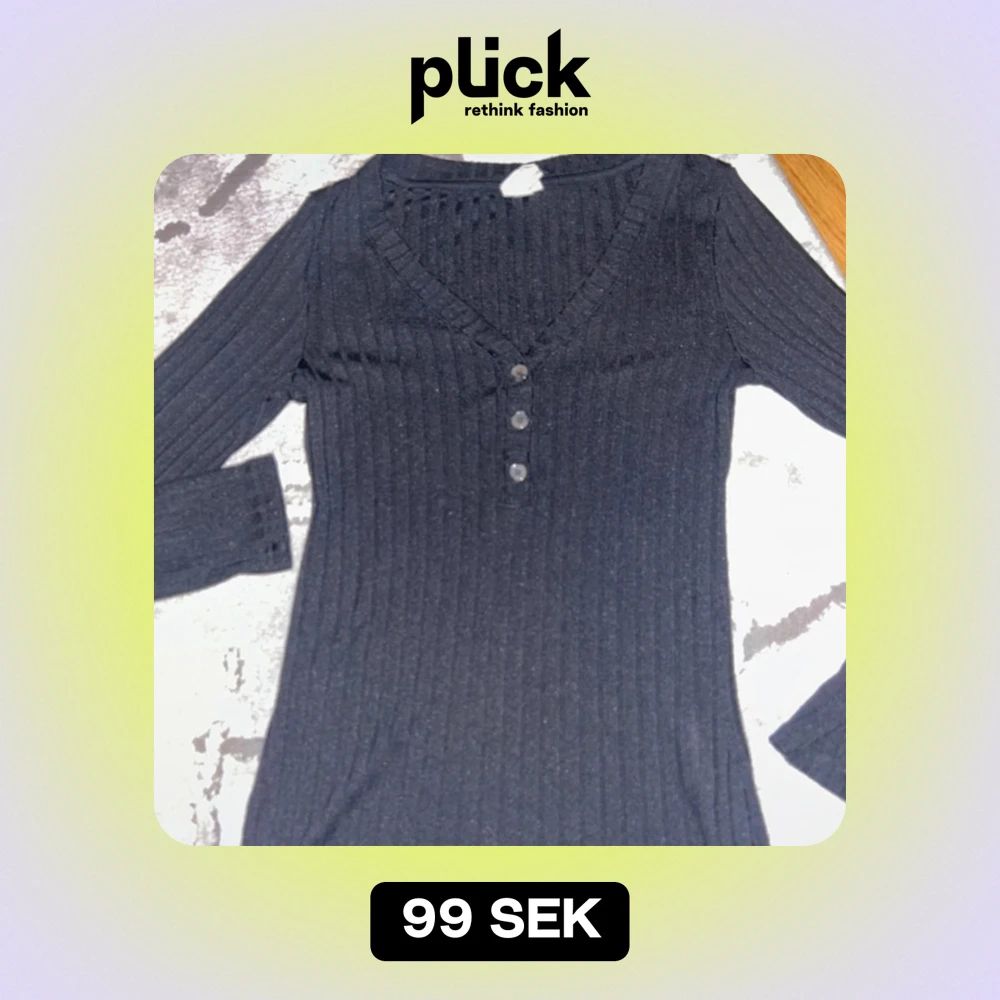 Snygg svart ribbad tröja med v-ringning och tre knappar framtill. Tröjan har långa ärmar och en stilren design som passar perfekt till olika tillfällen. Väl använd.