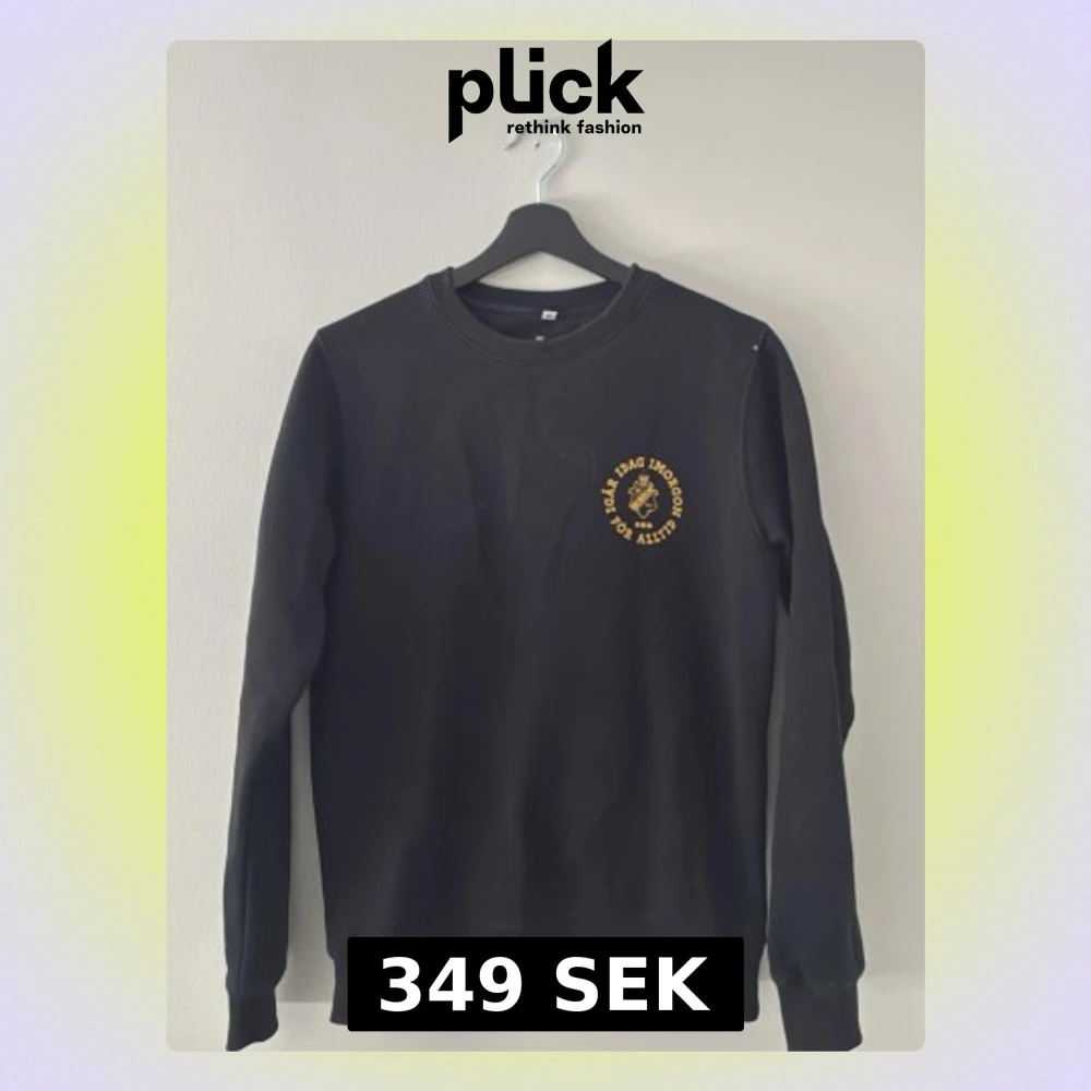 Svart sweatshirt med rund hals och tryck i gult på bröstet där det står 'Idag, imorgon, för alltid' runt ett lejonhuvud. Tröjan har långa ärmar och en klassisk, avslappnad passform. Perfekt för dig som gillar enkel men snygg streetwear.