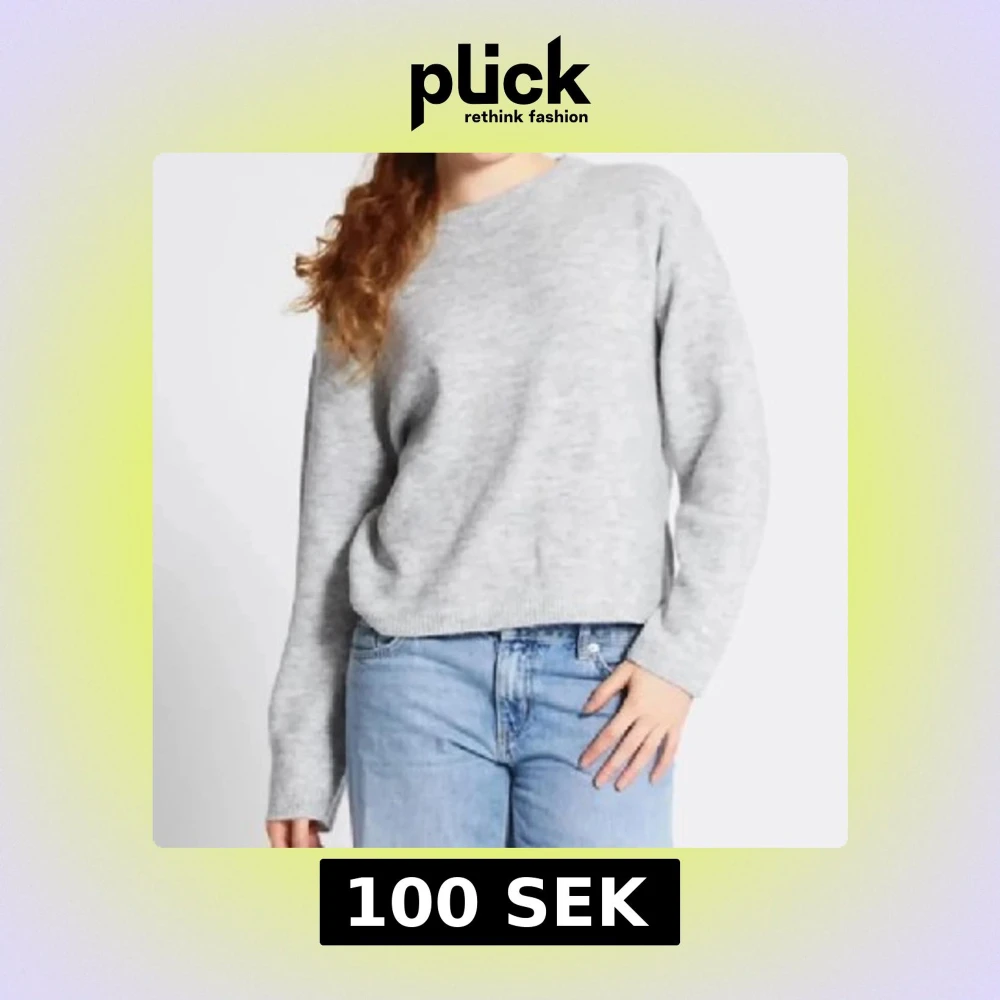 En enkel och stilren grå stickad tröja med rund hals och långa ärmar. Perfekt att slänga på sig när det är lite kyligt ute. Tröjan har en loose passform och ribbade muddar vid ärmslut och nederkant. Passar till jeans eller andra favoritbyxor.