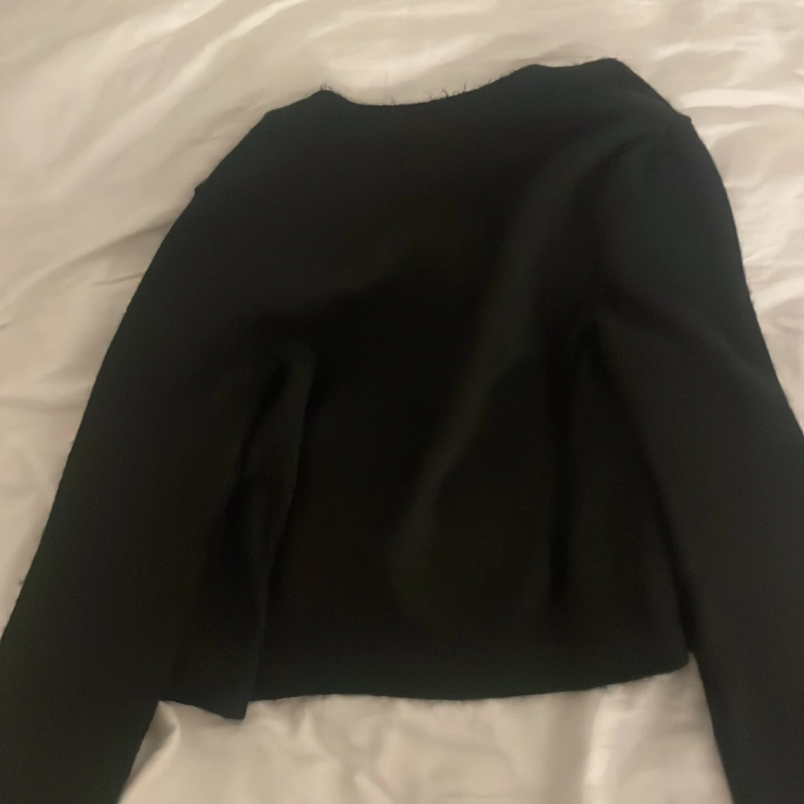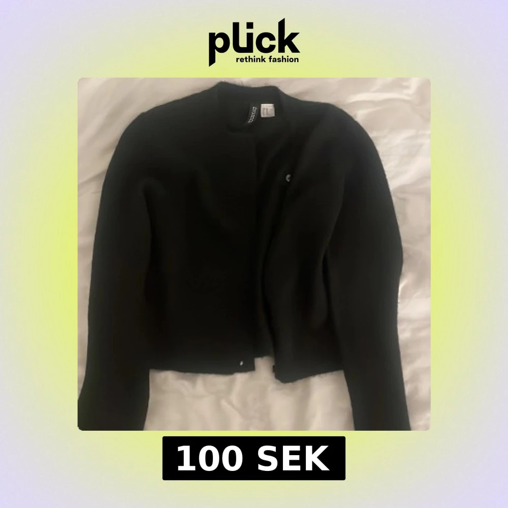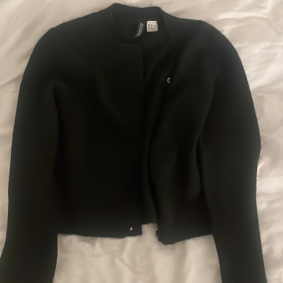 En stilren svart kofta från H&M Divided i storlek XS. Koftan har rund halsringning, lång ärm och en minimalistisk look utan synliga knappar. Perfekt att slänga över en topp för en clean vibe.