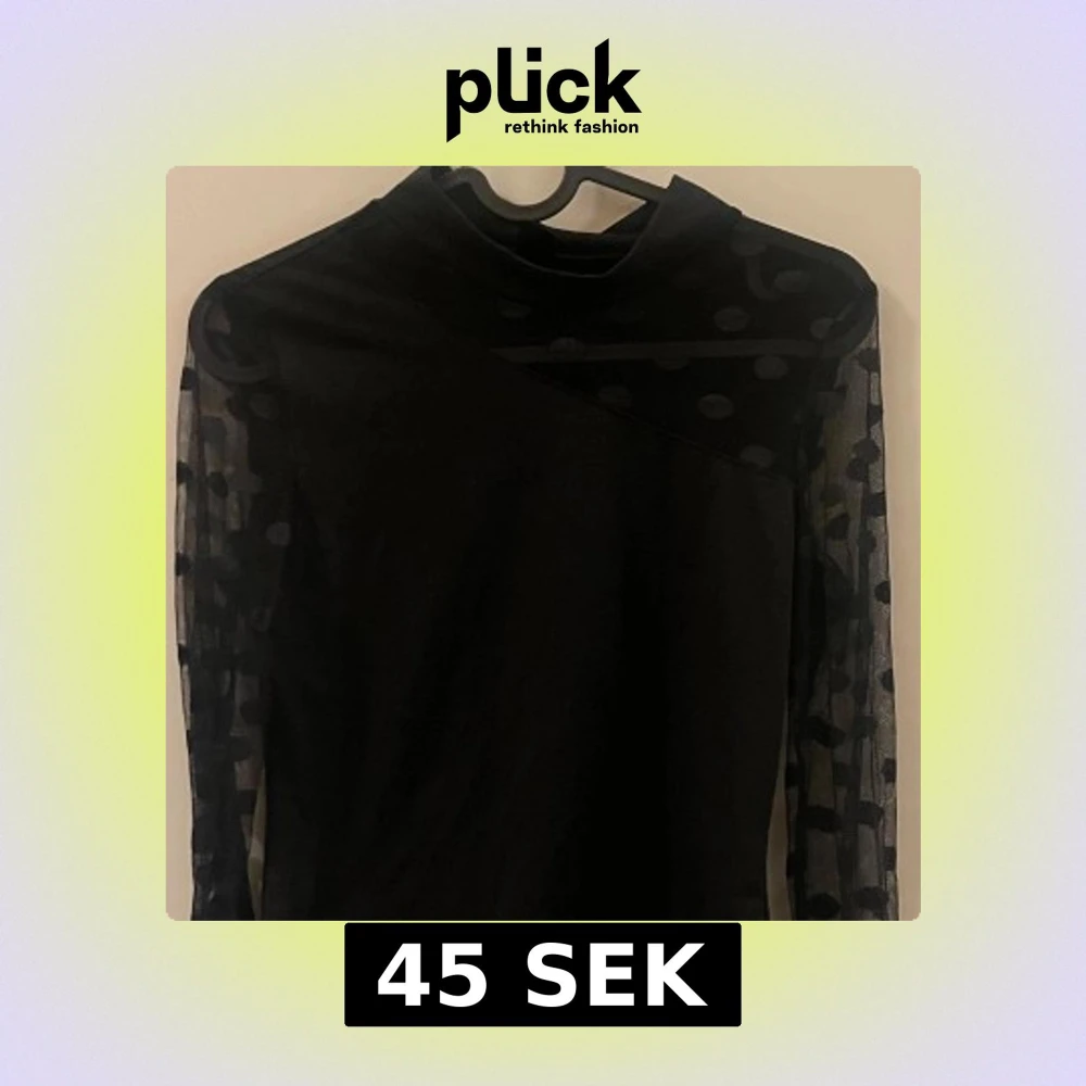 Snygg svart topp med unika prickiga meshärmar och asymmetrisk design. Perfekt för en stilren look med en twist. Toppen har en elegant passform och är tillverkad i ett mjukt material.