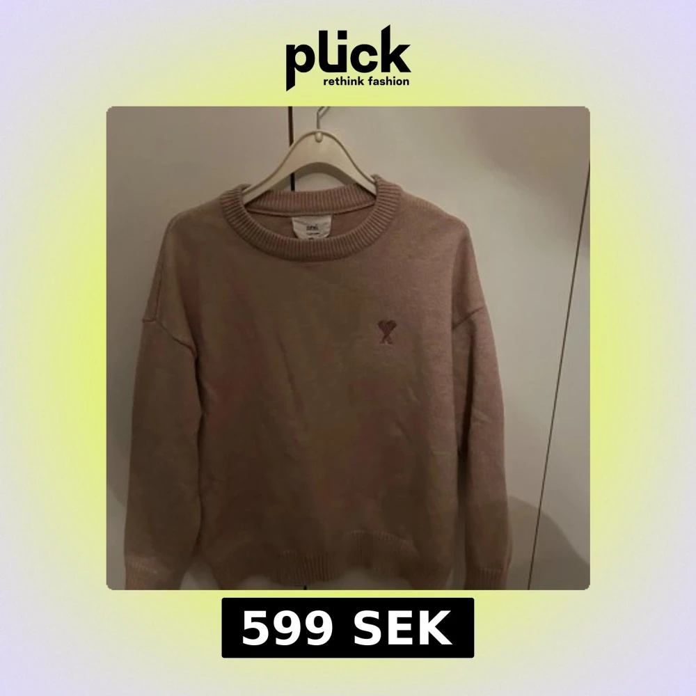 Säljer en stilren beige tröja från Ami med rund halsringning och ribbade kanter. Perfekt för en avslappnad och trendig look.