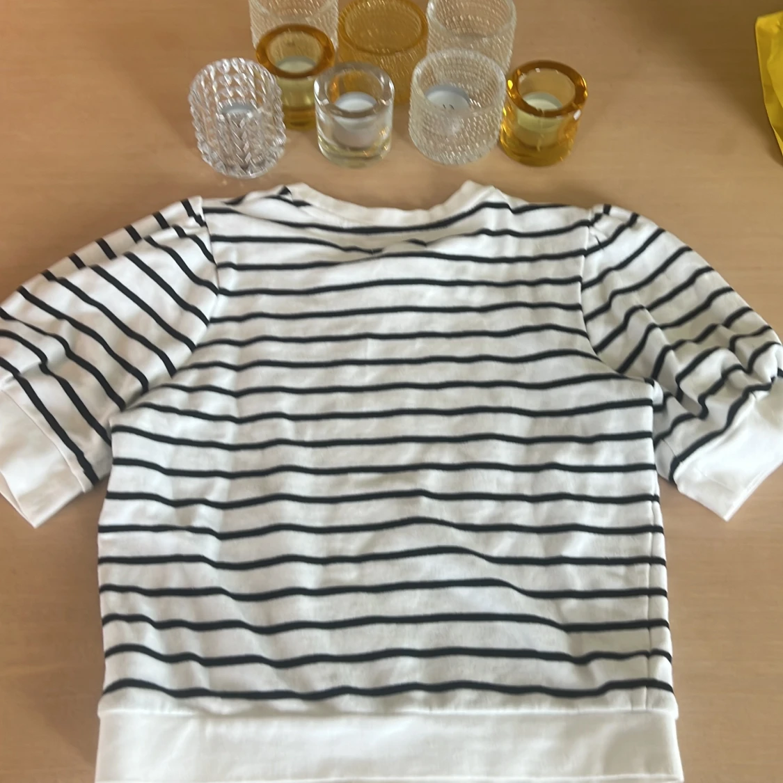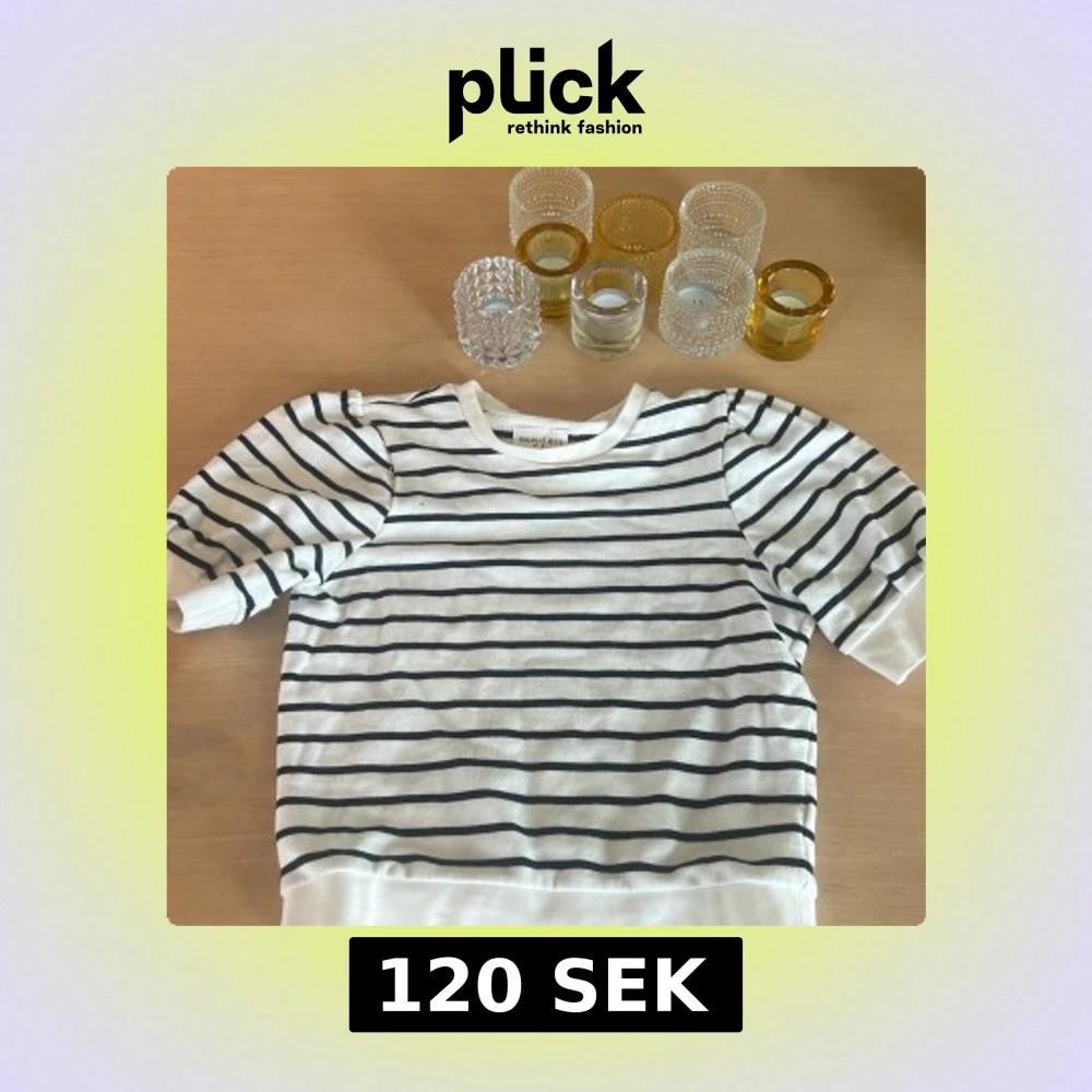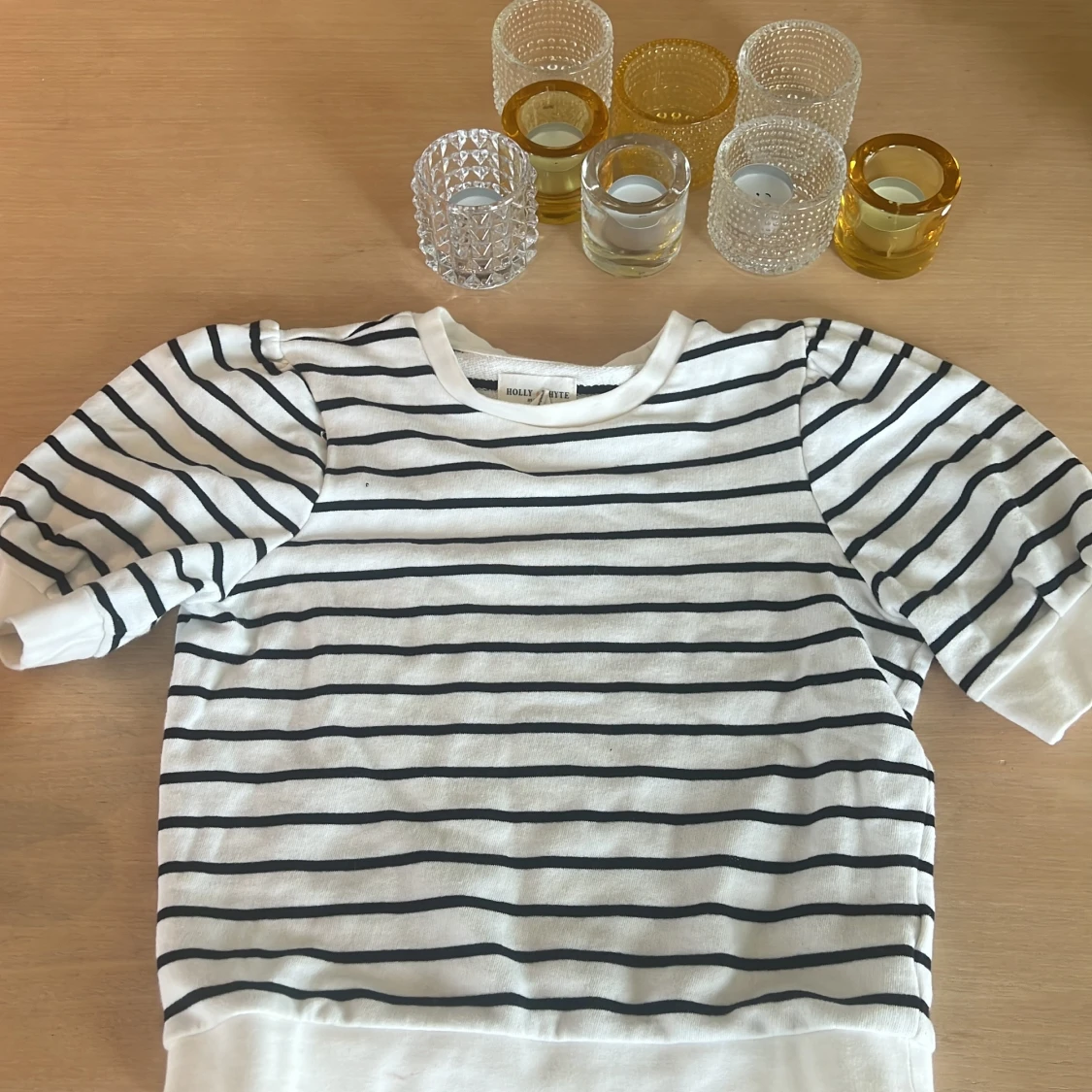 Vit och svart randig tröja från Holly & White med puffiga trekvartsärmar och breda muddar. Tröjan har en avslappnad passform och är gjord i mjuk bomull, perfekt för en chill och stilren look. Nästan aldrig använd, säljer pågrund av att jag aldrig använder den
