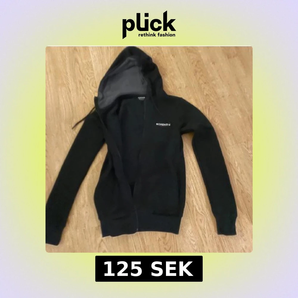Säljer en svart hoodie från McKenzie med dragkedja och huva. Perfekt för en avslappnad stil. Den har långa ärmar och en enkel design med logotyp på bröstet. Har bara testat tröjan men annars har den knappt används.