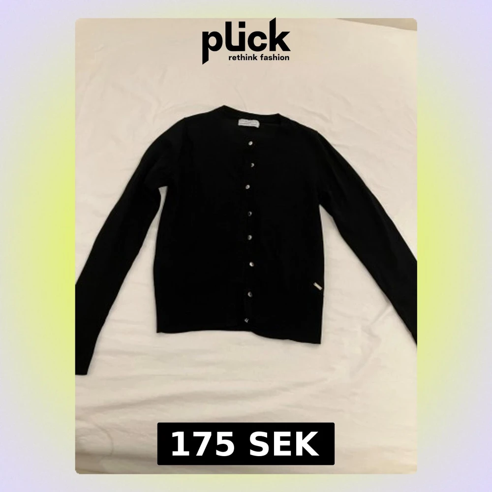 Stilren svart kofta med rund halsringning och knäppning framtill. Långärmad modell i 77% lyocell 23% polyester, perfekt att slänga över en t-shirt eller linne. Enkel och klassisk design som funkar till det mesta.