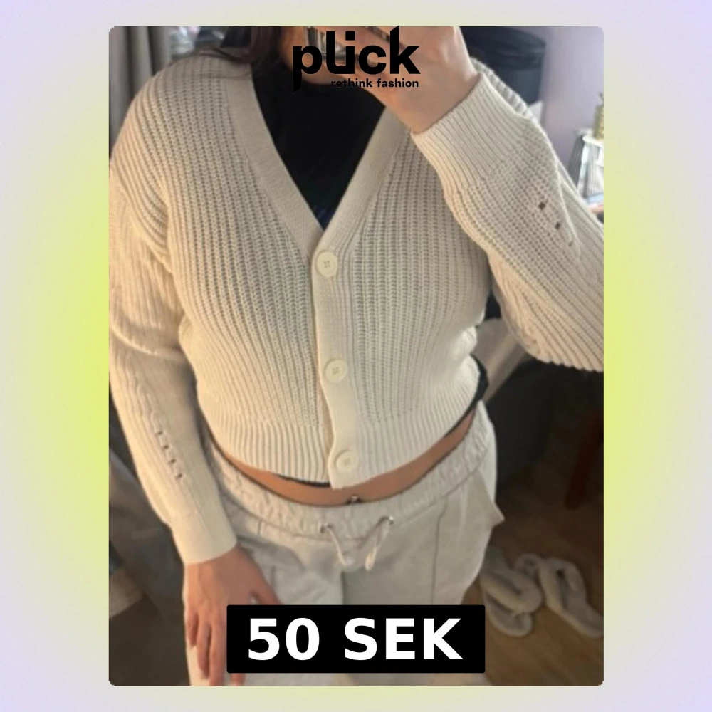 Säljer en krämvit ribbstickad kofta från Xside. Köpt utomlands.
