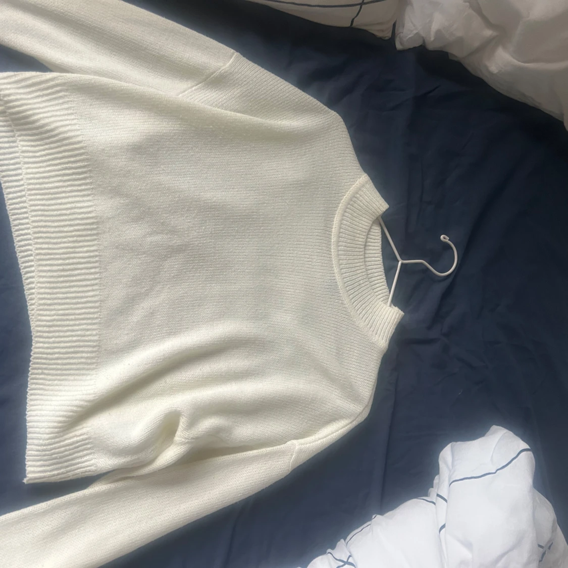 Säljer en enkel och fräsch vit stickad tröja från H&M Divided i storlek XS. Tröjan har rund hals, långa ärmar och ribbade muddar vid hals, ärmslut och nederkant. Perfekt att matcha med jeans eller kjol för en clean look.