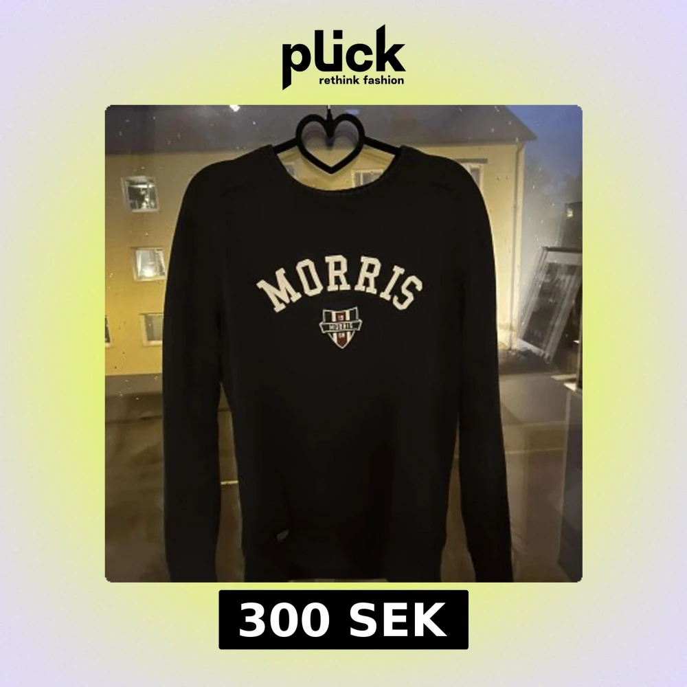 Svart långärmad tröja från Morris Gents i storlek XS. Tröjan har vit broderad logga och text framtill samt ribbade muddar vid ärmslut och nederkant. Klassisk och stilren modell som passar perfekt till jeans eller chinos. Sitter som S