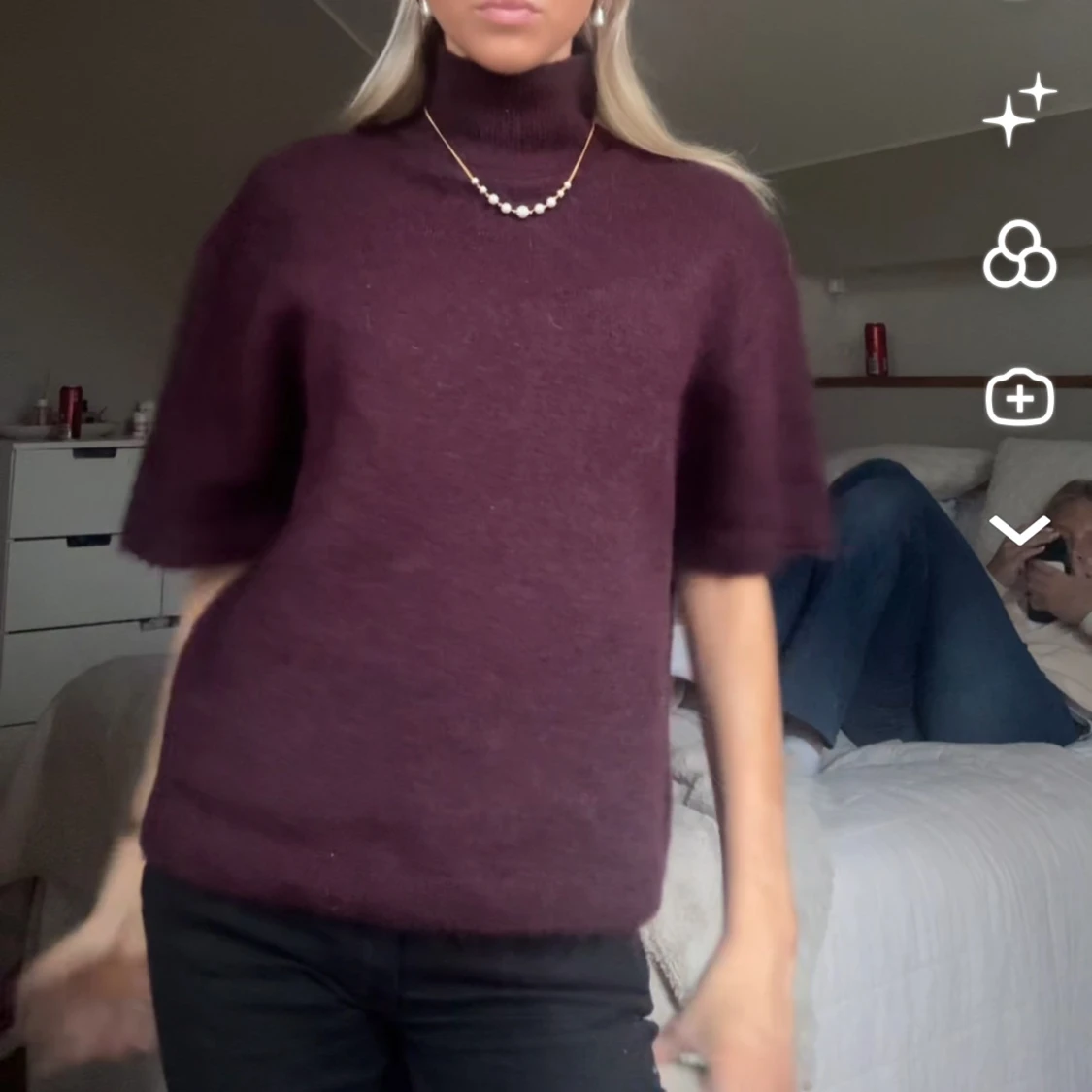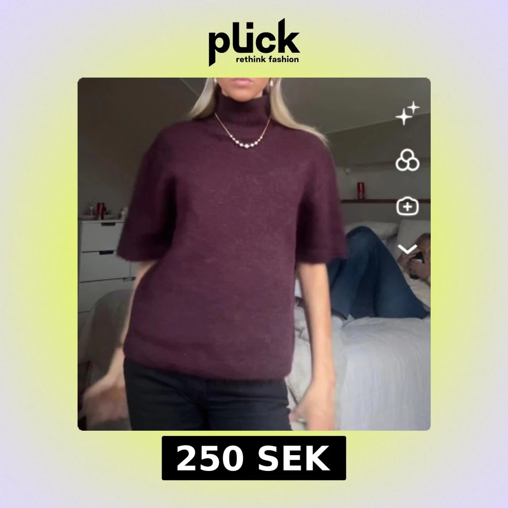 Vinröd polotröja med korta ärmar och hög krage. Tröjan är stickad i en mjuk ullmix och har en loose passform som ger en chill vibe. Perfekt för lager-på-lager under höst och vinter.