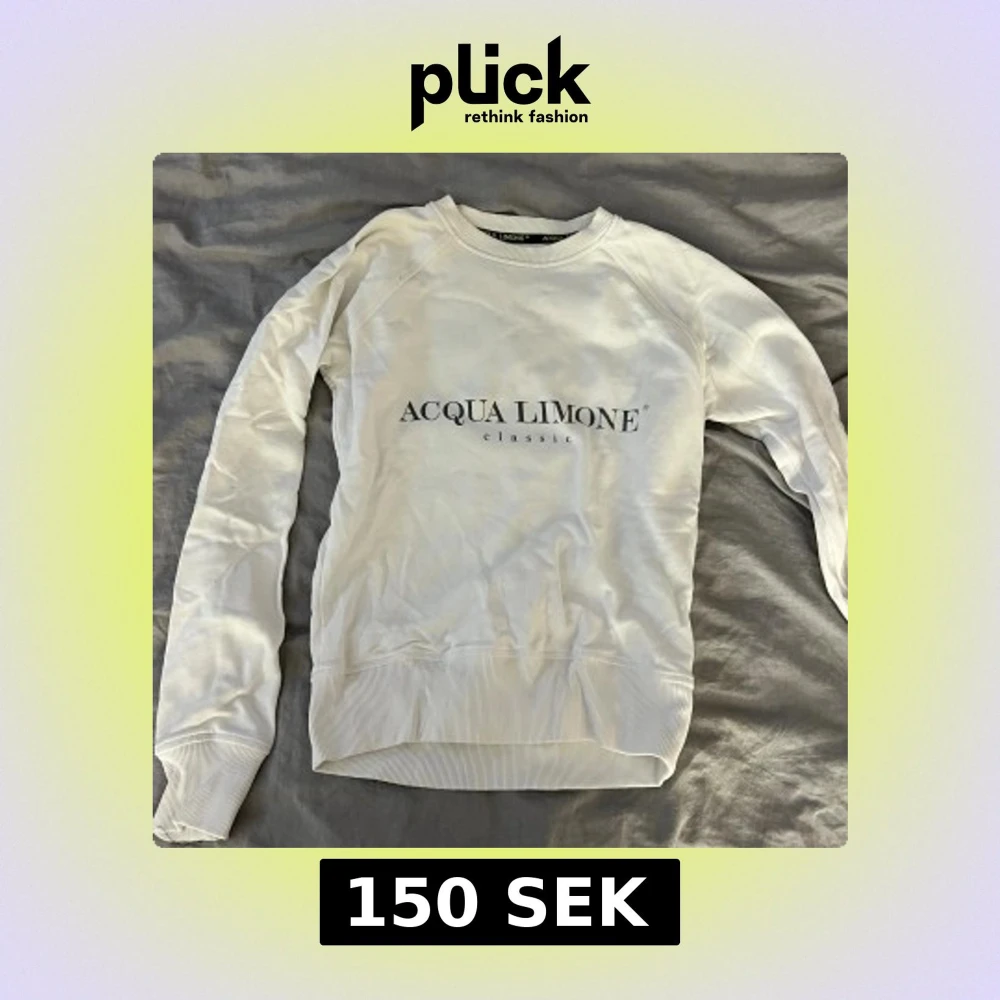 Vit sweatshirt från Acqua Limone. Tröjan har rund hals, långa ärmar och ribbade muddar. Har en liten, liten fläck fram men inget man tänker på (se sista bilden)