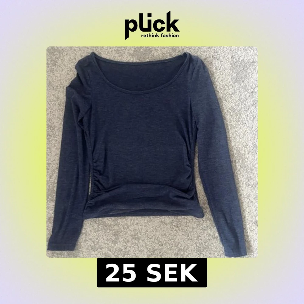 Säljer en stilren mörkblå långärmad topp med rund halsringning. Perfekt för en avslappnad look eller att klä upp med accessoarer. Passar bra till jeans eller kjol. Det är ”skrunch” på sidorna från SHEIN i storlek XS