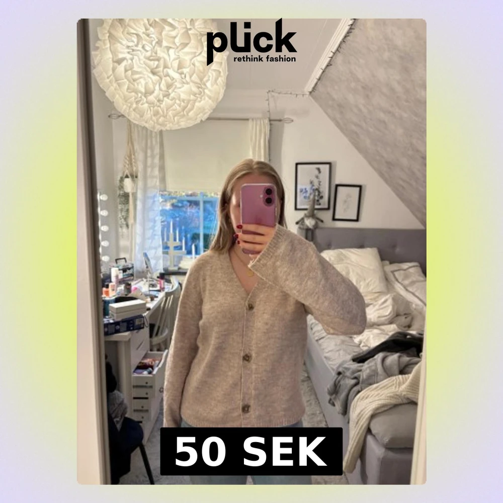 Mysig beige stickad kofta med v-ringning och stora knappar framtill. Koftan har lång ärm och en avslappnad passform, perfekt att slänga på sig över en t-shirt eller linne. Enkel och stilren design som funkar till det mesta.
